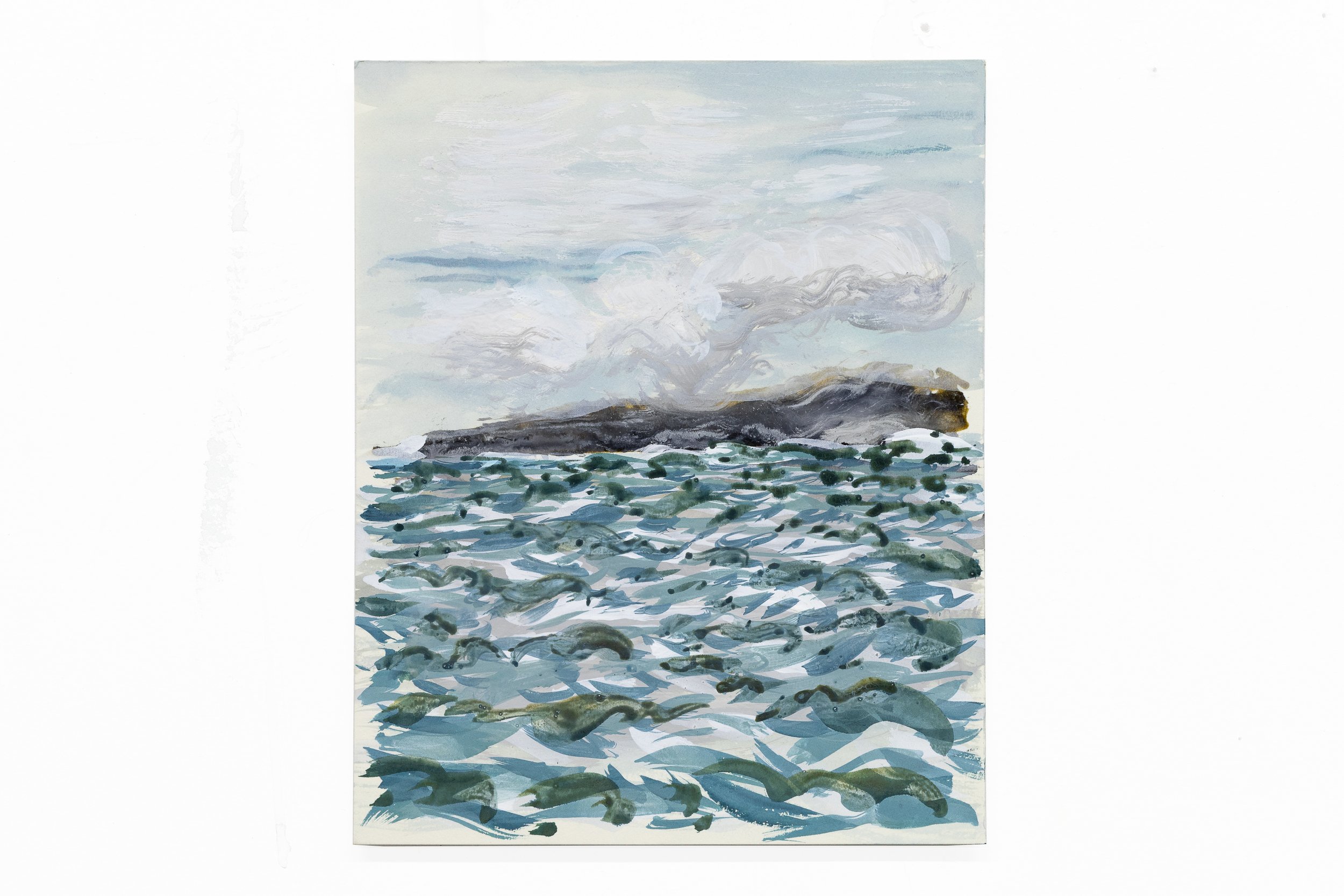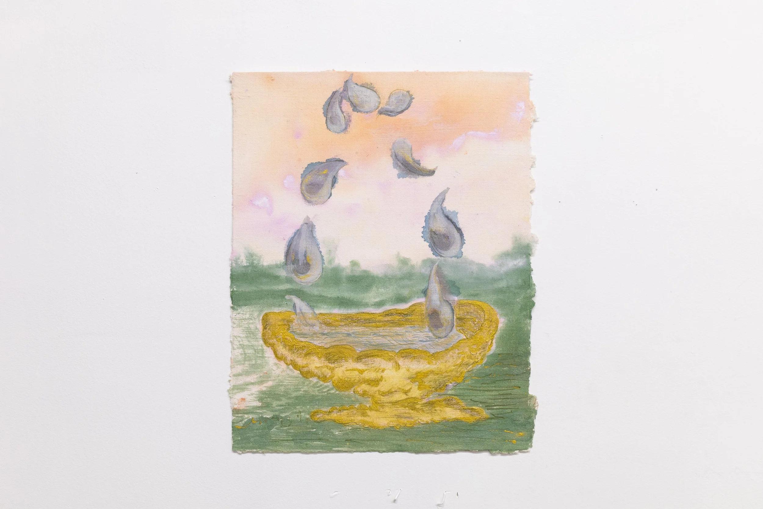 Watercolor, Ink and Polymer on Canvas mounted on Card Stock